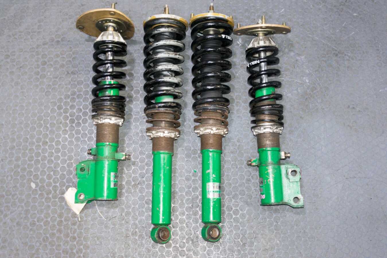 Upgrade your 3000GT suspension today with genuine Tein Type HA coilovers Mitsubishi 3000GT — a rare, complete set from an authentic VR4 Twin Turbo AWD application. Order now and receive fast shipping from our Utah warehouse.