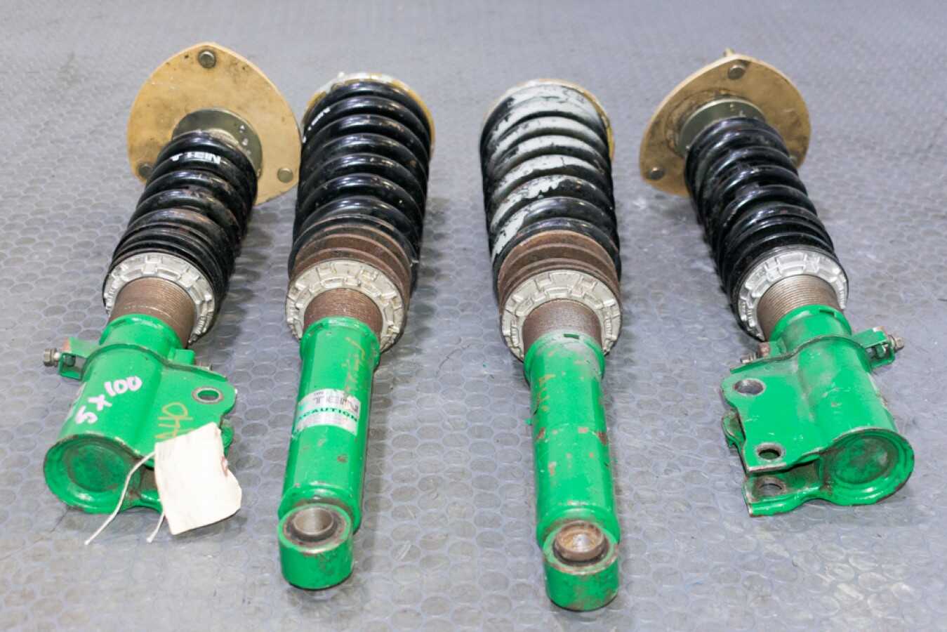 This is a used set of Tein Type HA coilovers Mitsubishi 3000GT removed from a 1990–1993 VR4 Twin Turbo AWD application. All actual item photos are provided for your review. Components are in good working condition. We recommend a full inspection by a qualified suspension specialist before installation.